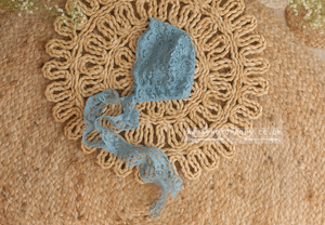 Baby girl newborn vintage style blue bonnet, boho, vintage, RTS