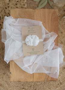 Baby newborn pearl beaded layer and bow tieback, off white, RTS