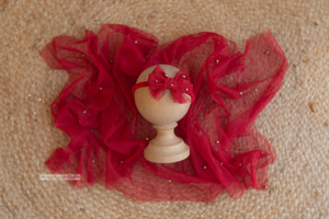 Baby newborn gold beaded layer and bow tieback, red, Christmas, RTS