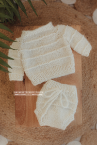 Knitted Baby newborn sweater and bloomers, Creamy off white, made to order