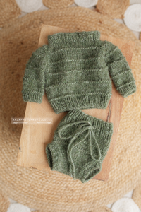 Knitted Baby newborn sweater and bloomers, old green, made to order