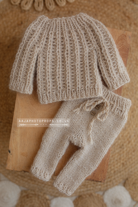 Chunky knit Baby newborn sweater and trousers, stone, beige, RTS
