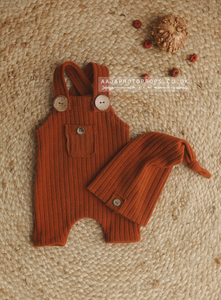 Baby dungarees and hat, rust burnt orange, boho, made to order