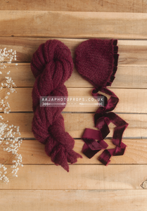 Baby newborn bonnet with velvet, wrap set, maroon, burgundy, made to order