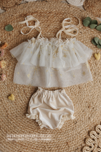 6-12 months size girl cream top dress and nappy cover, vintage style, boho, made to order