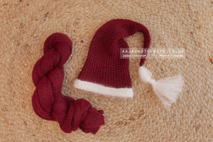 Dark maroon Red, knitted wrap and hat set, newborn baby, RTS