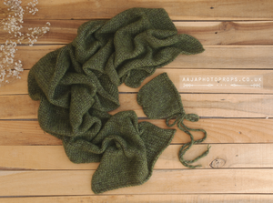 Baby newborn Knitted bonnet and wrap, olive green, made to order