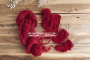 Baby newborn wrap, bonnet, socks, red, bobbles, made to order
