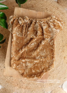 Baby 9-12 months size girl velvet romper, frilly, yellow, gold, RTS