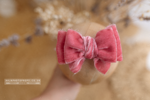 Baby newborn girl velvet bow tieback, double, Pink, soft, RTS