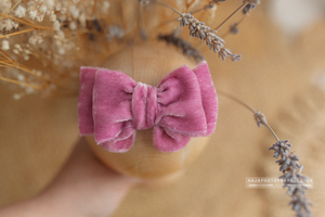 Baby newborn girl velvet bow tieback, double, pink lilac, soft, RTS