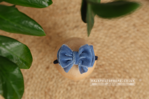Baby newborn girl velvet bow tieback Blue, plush, soft, double, RTS