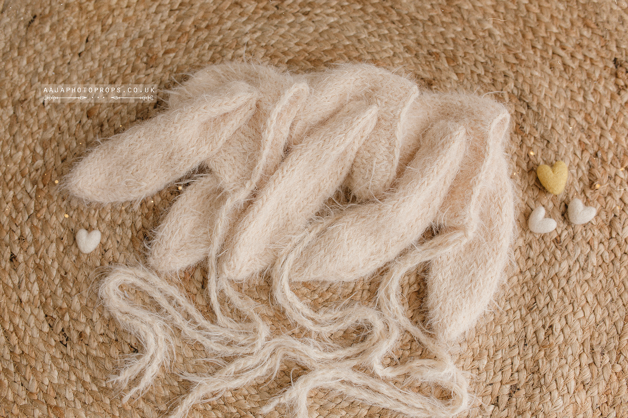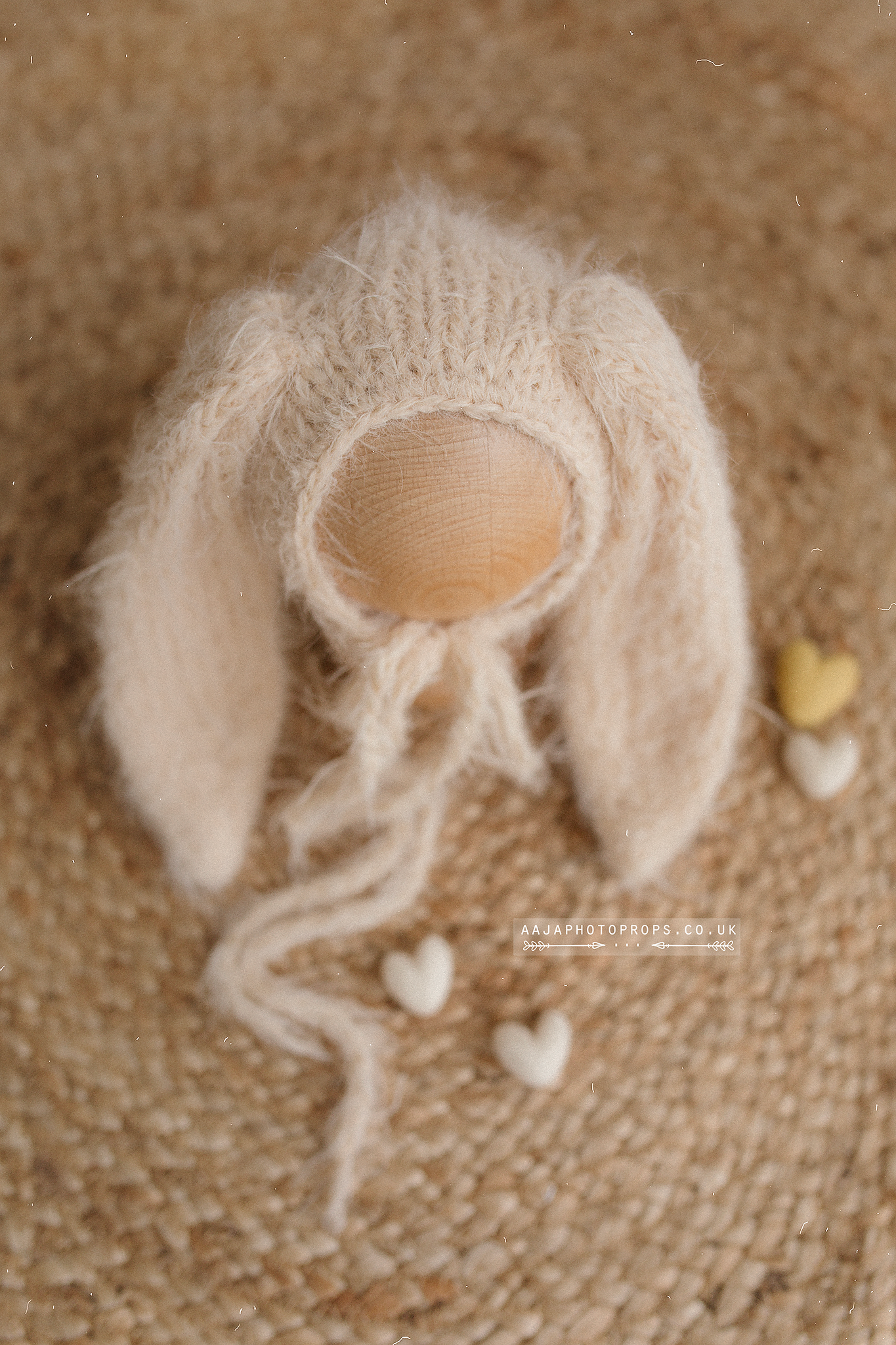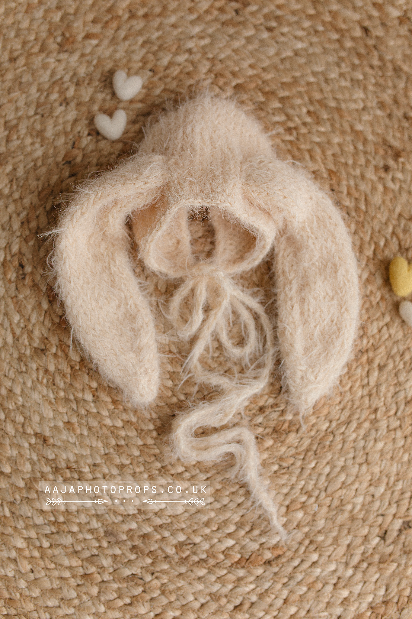 Baby newborn bunny bonnet, fluffy, ears, creamy beige, Easter, rabbit, bunny, RTS