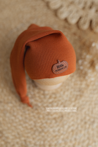 Baby newborn sleepy hat, knot, burnt orange, little pumpkin, patch, fall, made to order