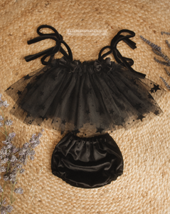 Black tulle star top and nappy cover, velvet, boho, made to order