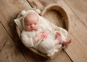 Baby newborn knitted romper, bear bonnet, wrap bundle, Cream off white, Made to order