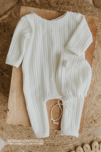 Baby newborn bear bonnet and romper, off white, cable, pyjama, made to order