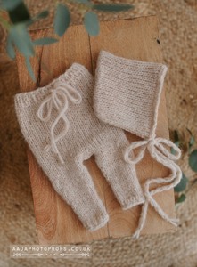 Knitted Baby newborn trousers and bonnet, beige, oatmeal, made to order