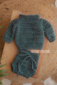 Knitted Baby newborn sweater and bloomers, teal, made to order
