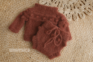 Baby newborn sweater and bloomers, rust burnt orange, bubbles, RTS