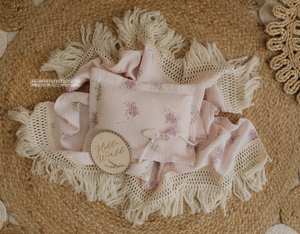 Boho layer, pillow, tieback set, cream, roses, tassels, velvet bow, RTS