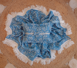 Boho layer, pillow, tieback set, blue, daisy, flowers, tassels, RTS