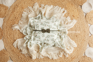 Boho layer, pillow, bow tieback set, cream, floral, tassels, sage, RTS
