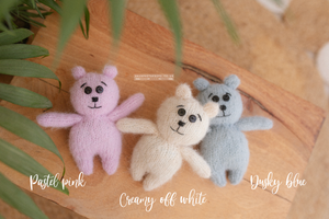 Baby newborn posing toy, bear, pastel, off white, grey, stuffie, lovie, made to order