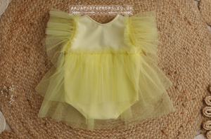Baby girl romper, lemon yellow, boho, tulle, frilly, made to order