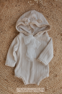 Vintage style hooded bear romper, 9-12 months size, beige, lace, boho, made to order