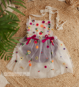 9-12 months size romper, berry pink, flowers, boho, tulle, RTS
