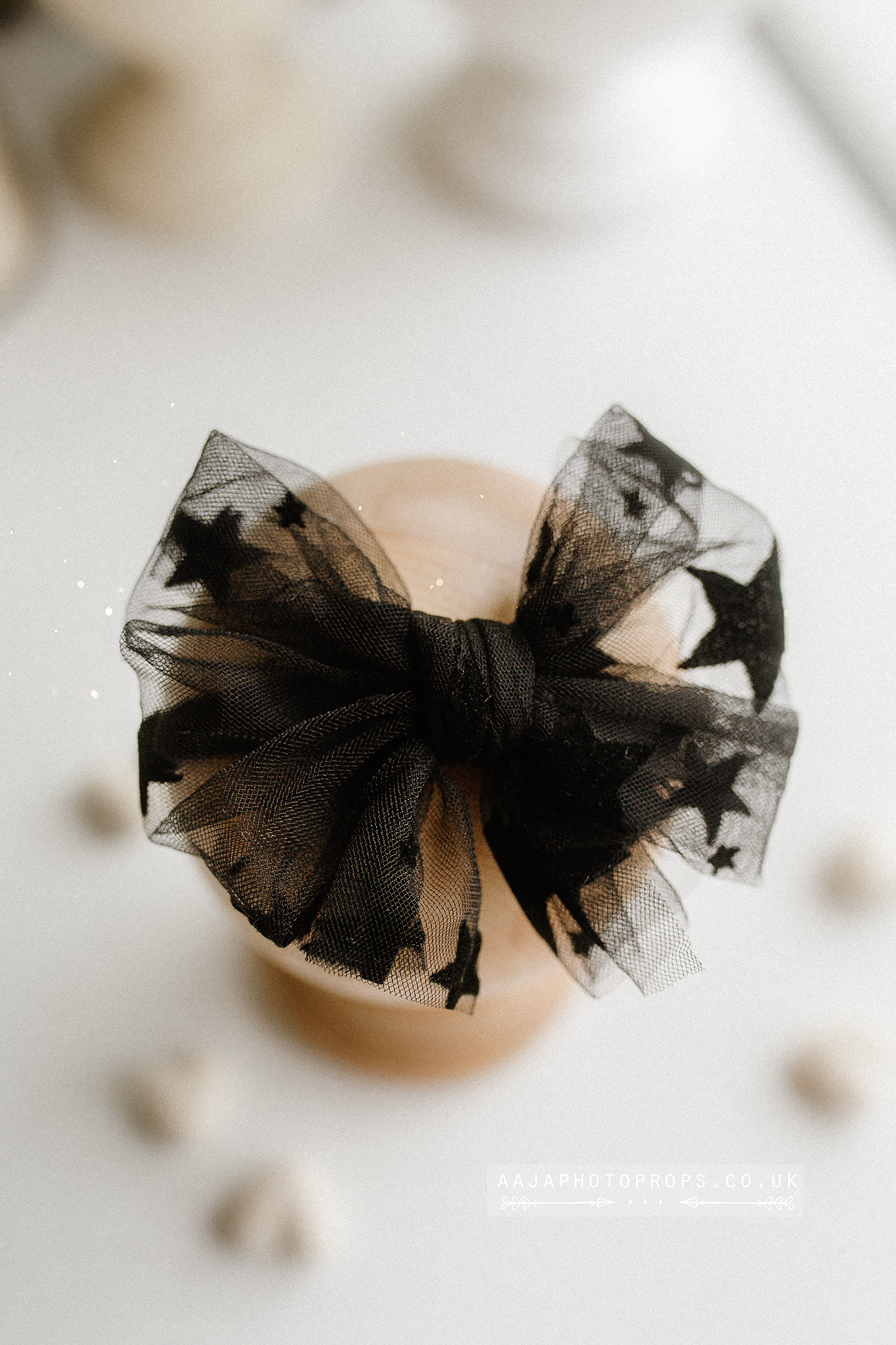 Baby newborn sitter girl bow tieback, black, stars, RTS