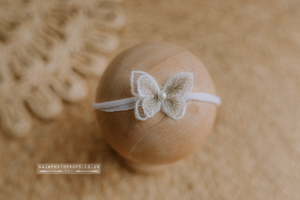 Baby newborn sitter girl butterfly tieback, off white, pearl, RTS