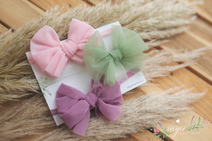 Baby newborn sitter girl bow tiebacks set, pink, purple, lilac, green big RTS