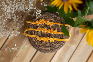 Baby newborn girl velvet bows tieback yellow, mustard, sunflower, RTS