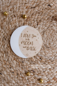 Wooden disc I love you to the moon and back, baby, stars, RTS