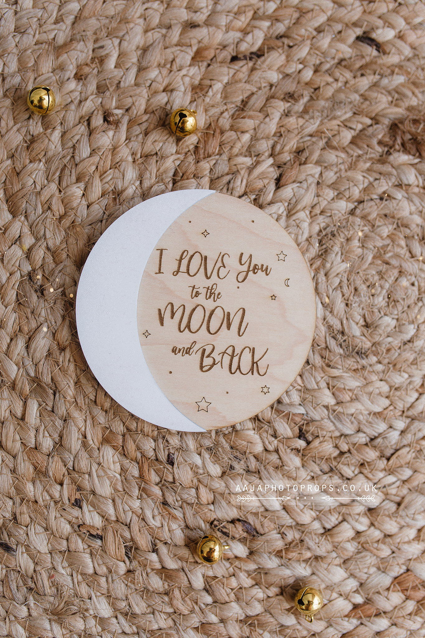 Wooden disc I love you to the moon and back, baby, stars, RTS